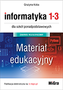 Materiał edukacyjny jest rozszerzeniem podręcznika do zakresu podstawowego serii Informatyka 1-3 i umożliwia realizację programu nauczania pt.Informatyka 1-3. Program nauczania informatyki dla szkoły ponadpodstawowej. Zakres rozszerzony. Zawężona podstawa programowa 2024, MIGRA, Wrocław 2024 autorstwa Grażyny Koby (do pobrania tutaj).